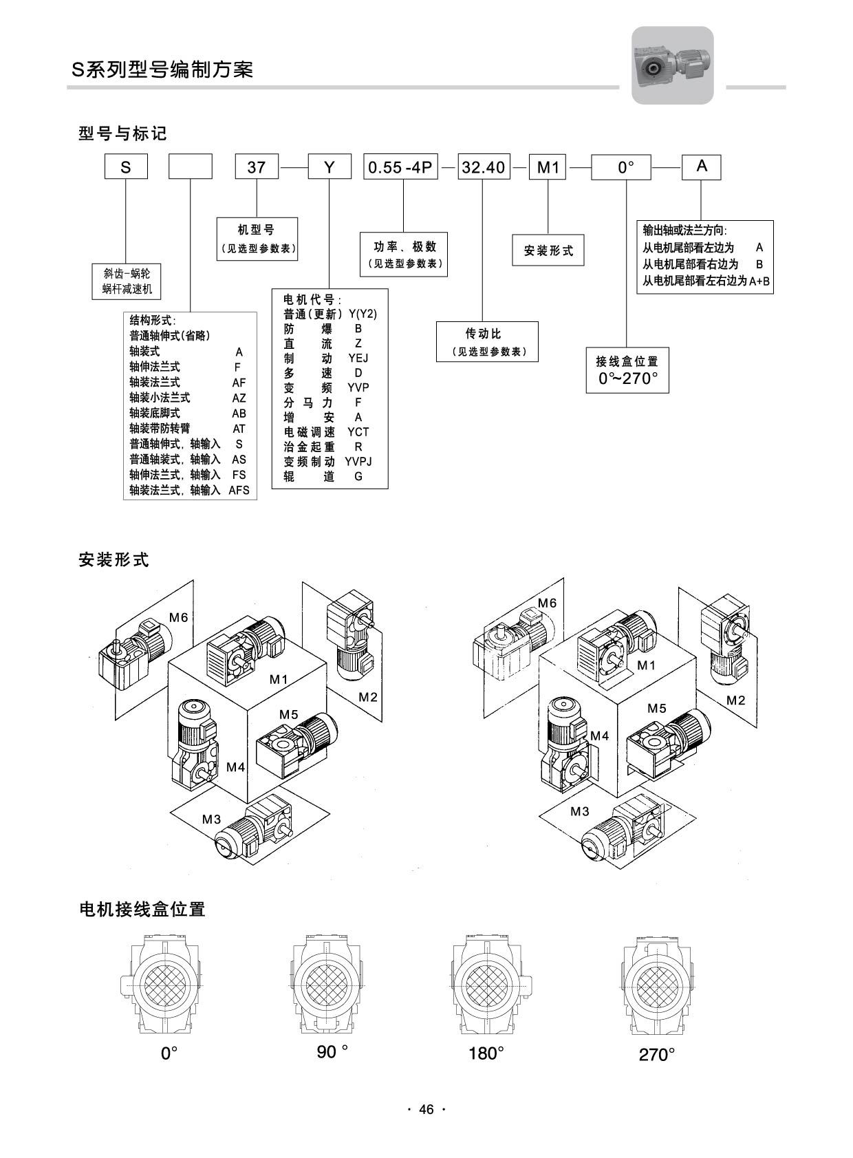 ◆ 安装方式:底脚安装、空心轴安装、法兰安装、扭力臂安装、小法兰安装。