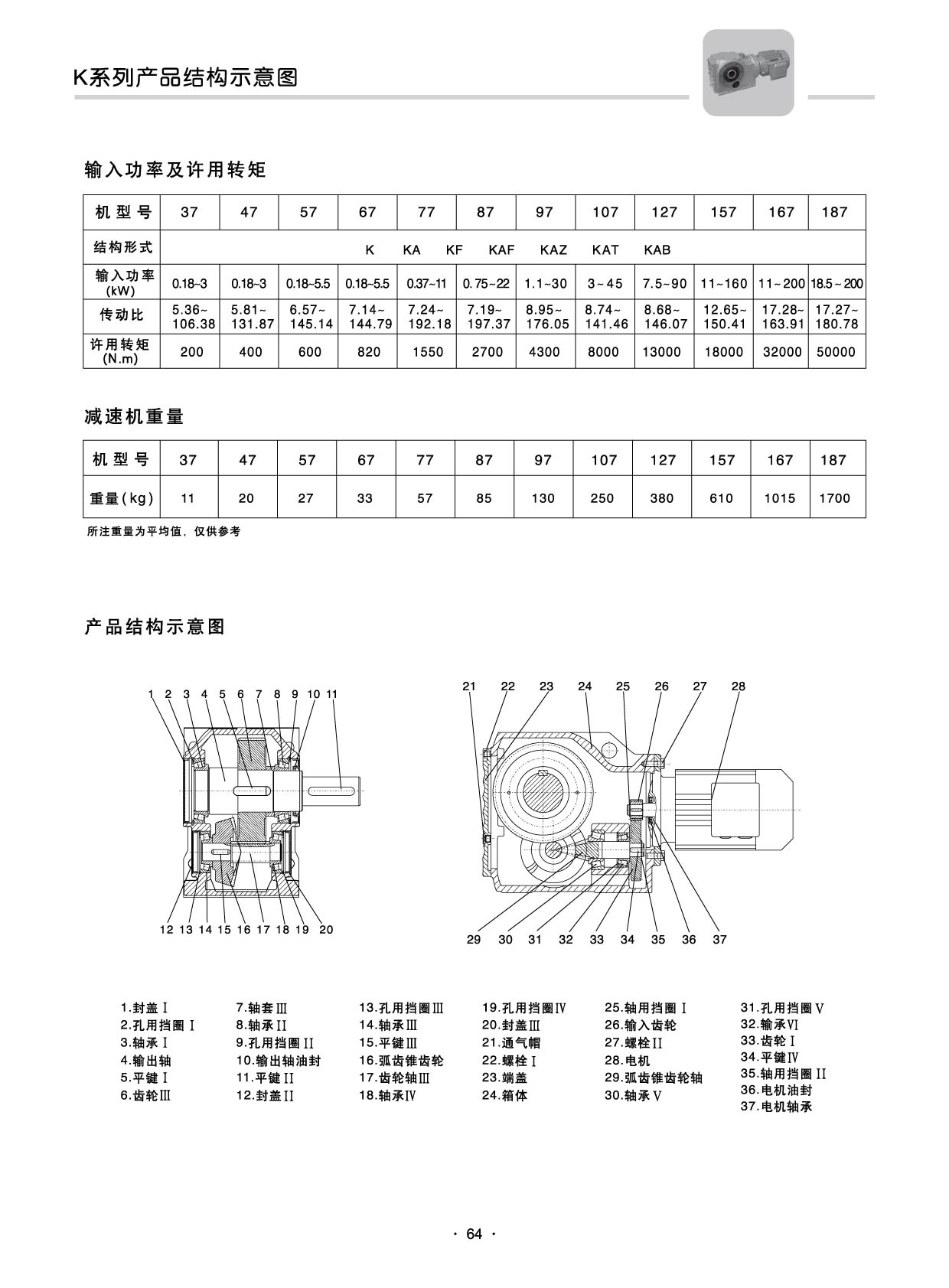 KA型:KA37、KA47、KA57、KA67、KA77、KA87、KA97、KA107、KA127、KA157、KA167、KA187
